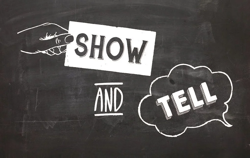 Remember show and tell in school? You’d bring something that you wanted to share with the class and tell them all about it. There is something about the school show and tell process that contains a jewel for storytellers to consider: that is, how much do you show your readers – akin to bringing an object that your friends can see, touch, smell, and experience, and how much do you tell them about it— what do you report about the object’s nature and significance?